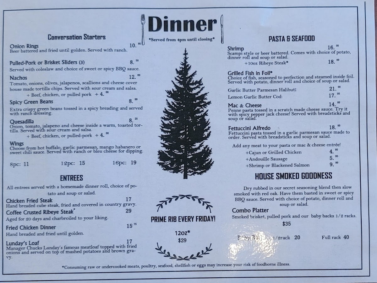 Breakfast favorites include a selection of omelettes such as the traditional and the Lumber Jack. The lunch and dinner offerings are equally impressive, highlighted by rave reviews for items like the Cajun Chicken Fettuccine Alfredo and juicy prime rib dinners available on Fridays.